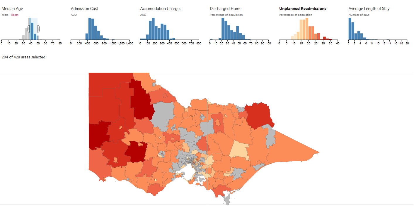 Metrixcare Population Analytics encourages a greater focus on population health and wellness through the ability to overlay a wide range of process and outcome metrics on top of a population based map visualisation. The interactive map is easily tailored for the region in which your organisation is delivering healthcare services.